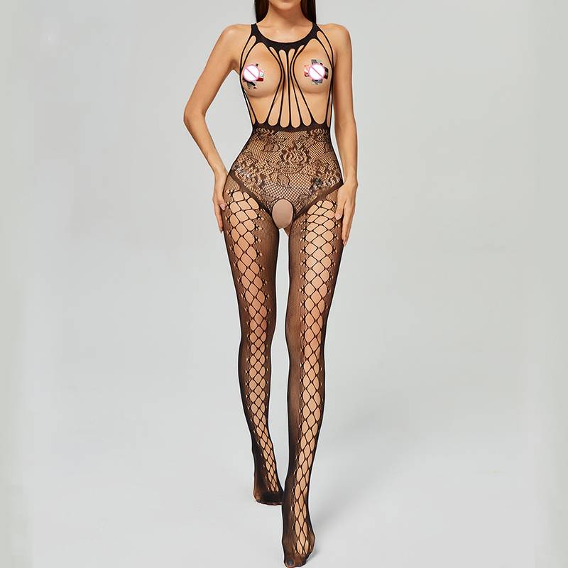 Solid See-Through Hollow Out Teddies with Geometric and Floral Pattern