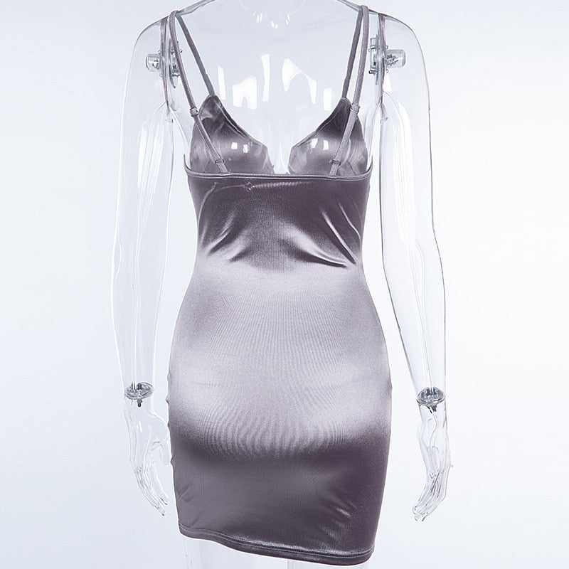 Polyester on V-Neck Sheath Sleeveless Mini Dress