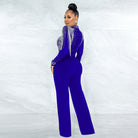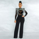 Get the perfect look for your next evening out with this long sleeve jumpsuit. The rhinestone trim adds a touch of sparkle to the outfit, while the mesh paneling on the front allows for an even more comfortable fit. The polyester material makes it easy to wear this outfit to any event, and the full-length sleeves give you the coverage you need.