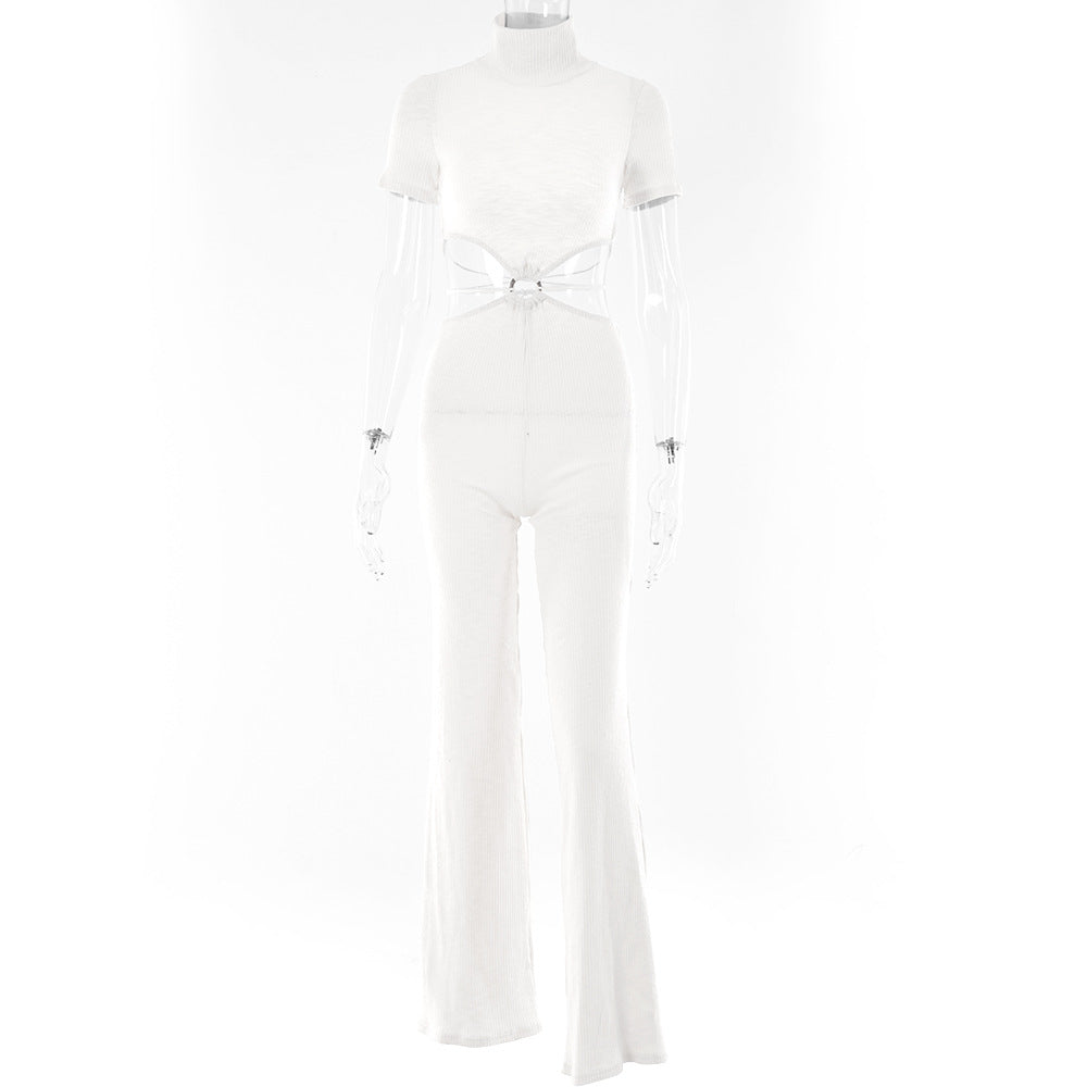 No matter the occasion, this Women's Jumpsuit is a versatile piece that will be a great addition to your wardrobe. This jumpsuit is made of 100% cotton, which is great for those who are sensitive to fabrics and need something soft and breathable. It has short sleeves and a turtleneck, making it perfect for chilly days. The jumpsuit has a solid color and a hollow-out design, which will show off your curves.