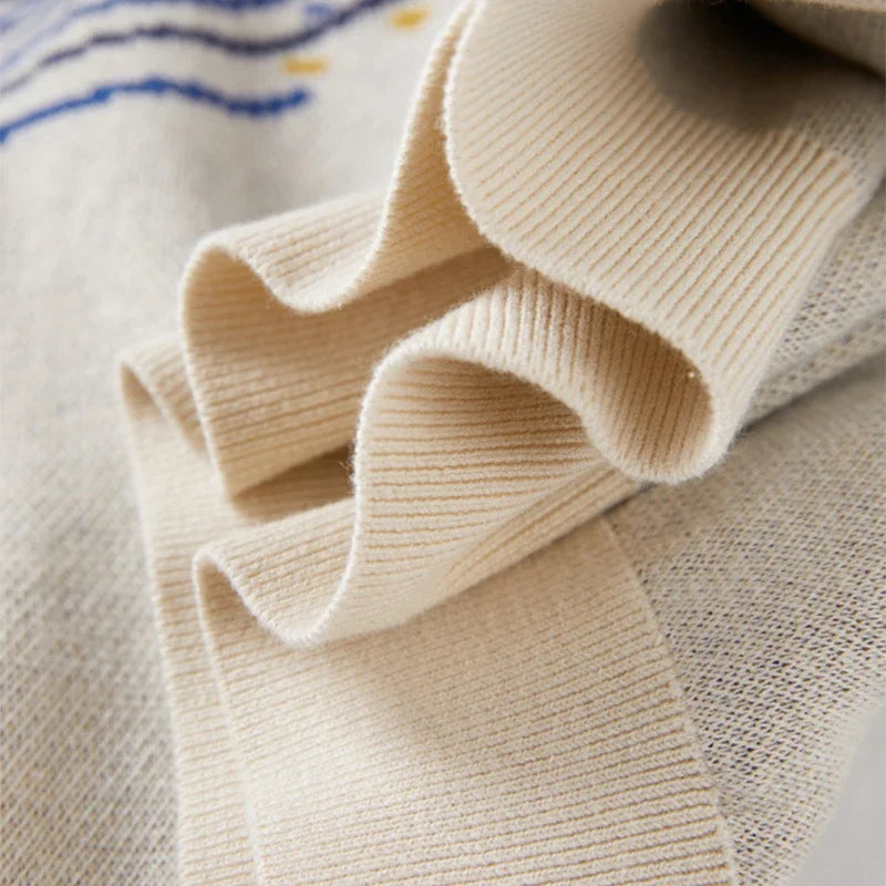 This sweater is a knitted masterpiece that combines warmth and style. Made with a blend of polyester and cotton, it features a fun cartoon design that adds a touch of whimsy to your wardrobe. Stay cozy and make a statement with this must-have sweater.