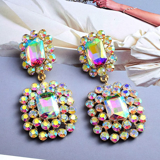 Pendiente colgante cuadrado de diamantes de imitación con material de aleación de zinc
