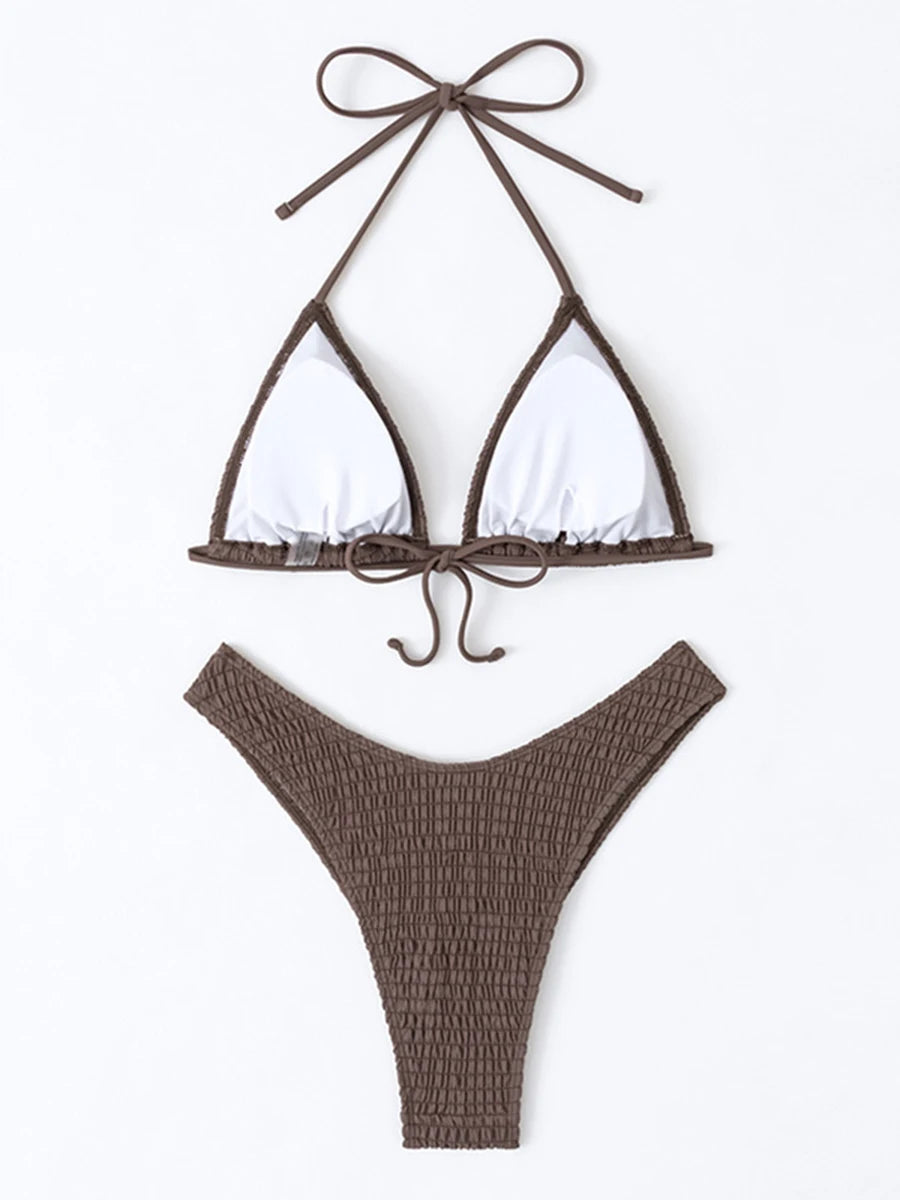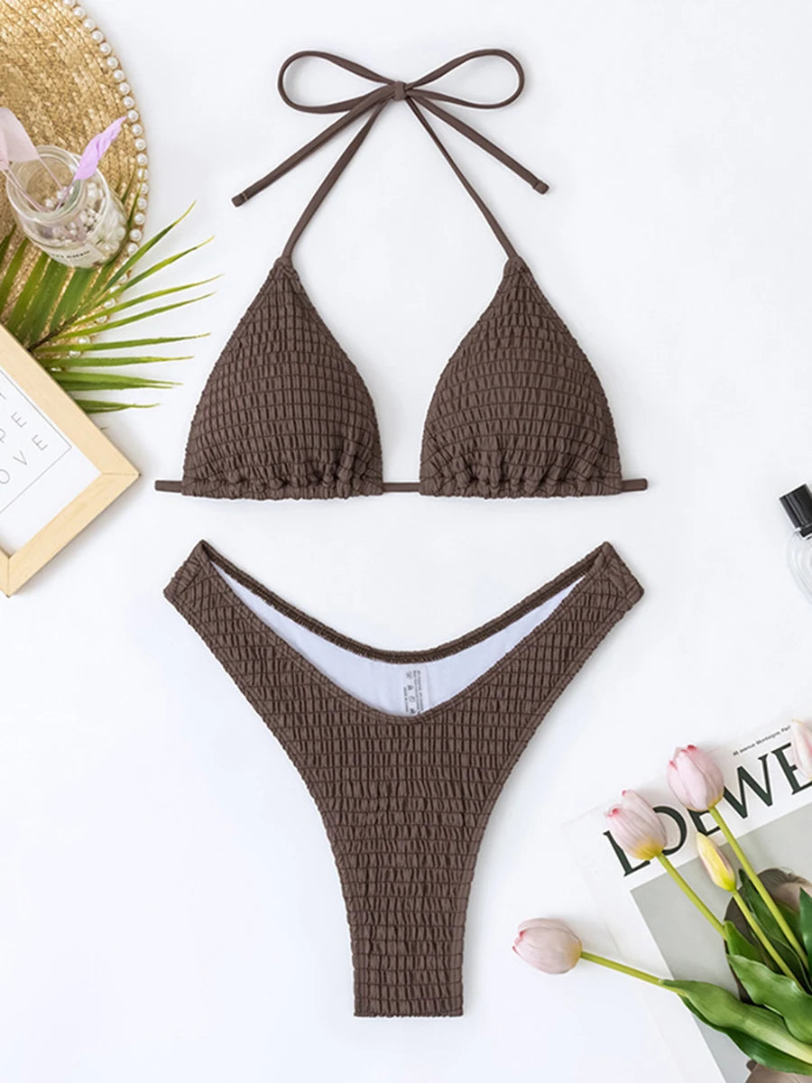 Discover a new way to make a splash with this bikini set! Made with a solid blend of polyester and spandex, this stylish set will provide the perfect fit and comfort for all your summer adventures. Don't let the rain stop you, as this bikini will keep you looking and feeling confident in any weather!