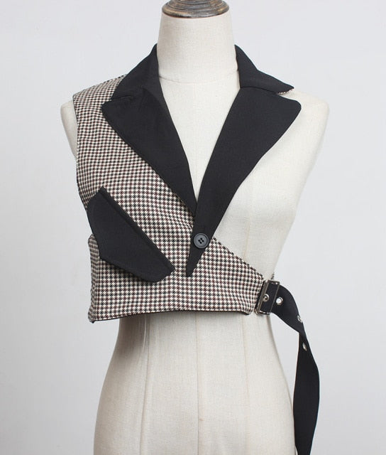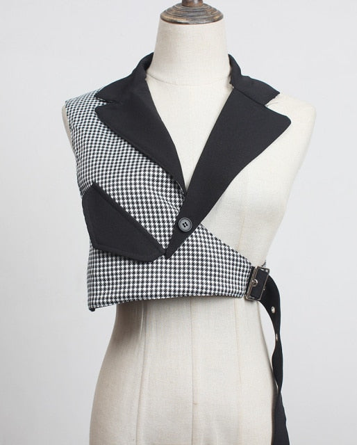 Top tipo blazer corto de algodón y poliéster con corte y diseño de solapa con muesca