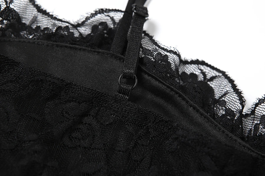 The Angel’s Caress Nightdress combines a daring mini length with a slim fit to highlight your silhouette confidently. Crafted from a smooth blend of polyester and spandex, it offers a comfortable stretch that moves with you. Delicate lace detailing adds an alluring touch, making this nightdress perfect for nights when you want to captivate and charm effortlessly.