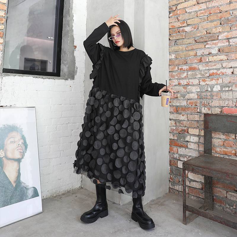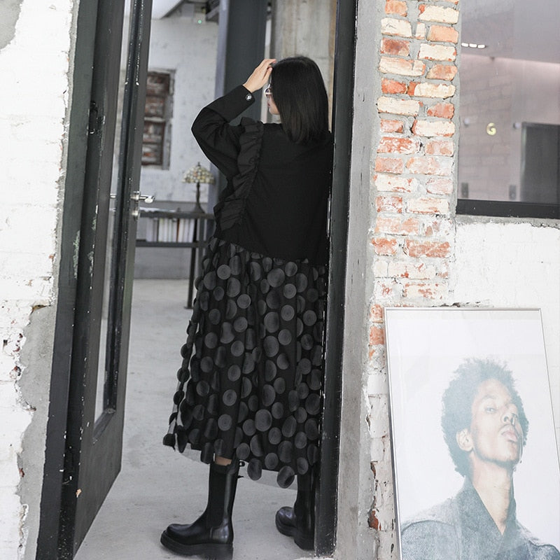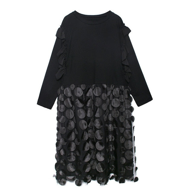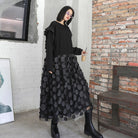 Vestido midi de manga larga con apliques de hongos en malla de algodón y poliéster