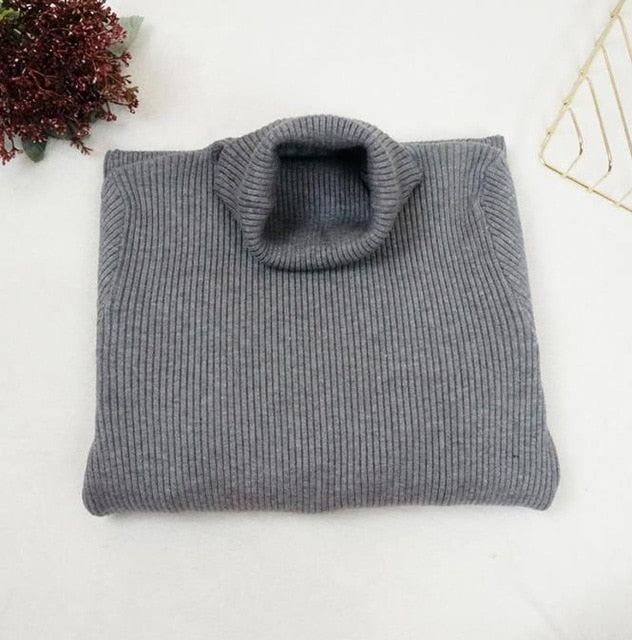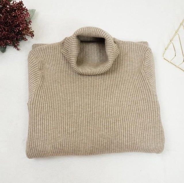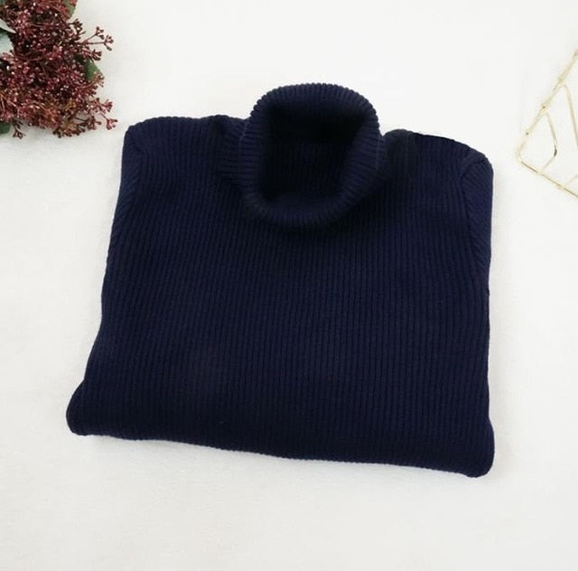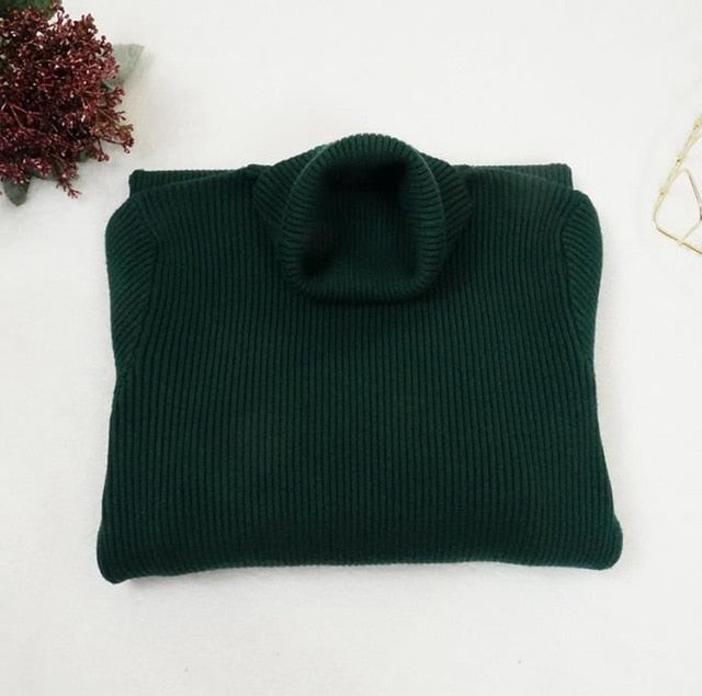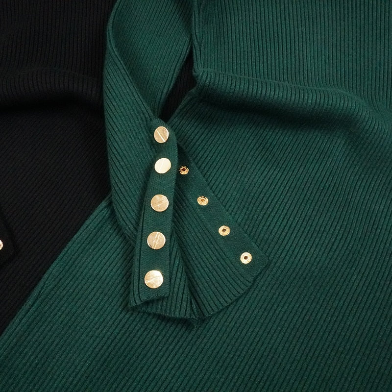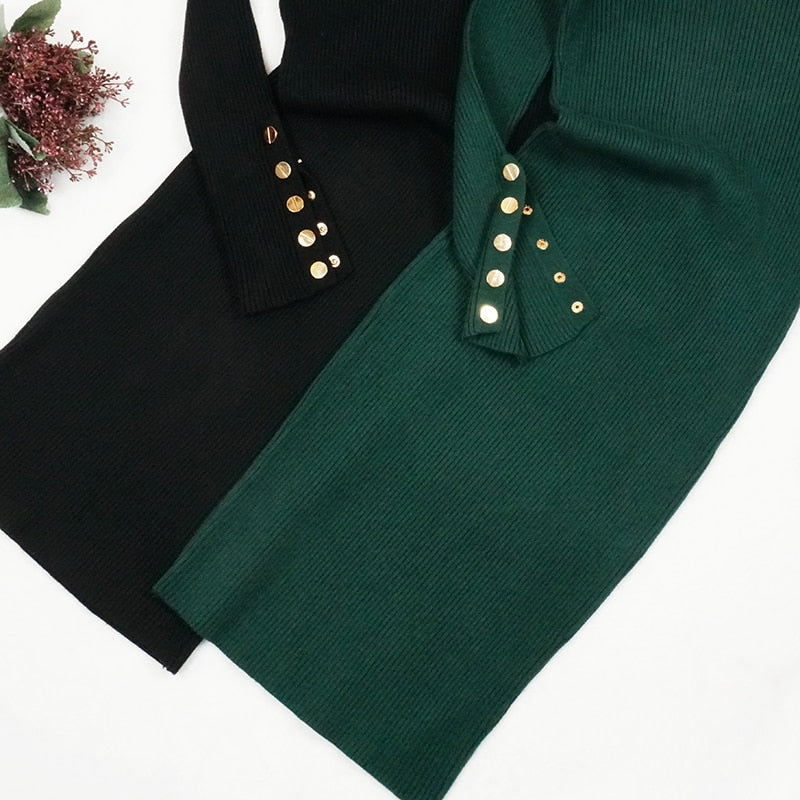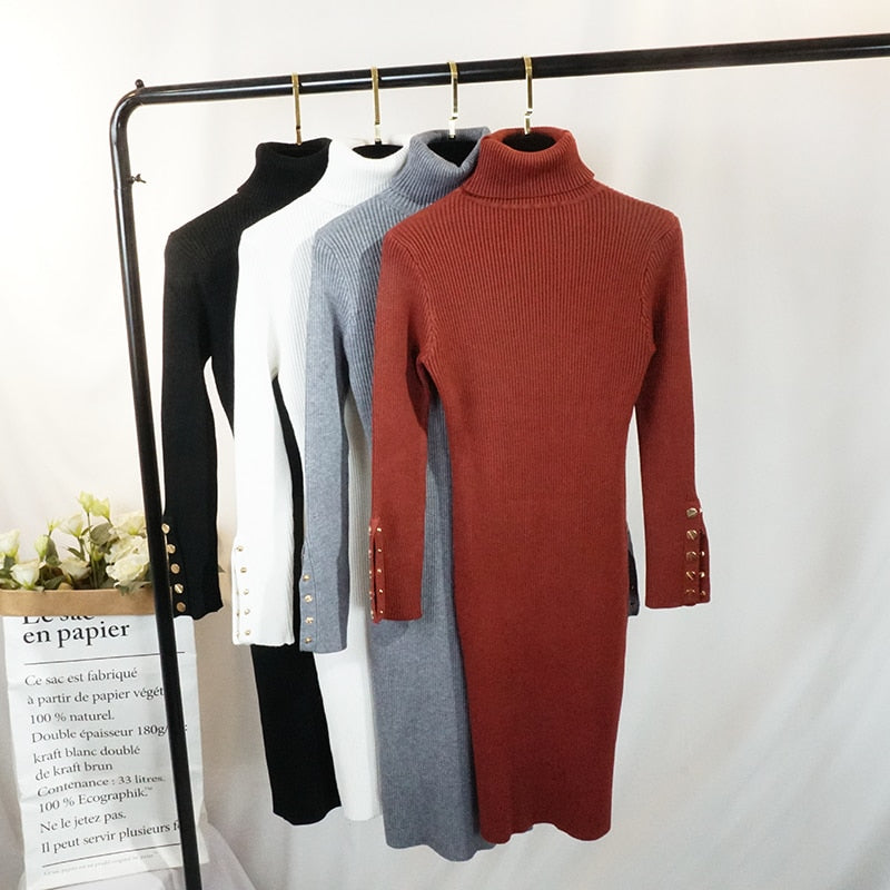 Vestido midi liso de manga larga de punto de mezcla de algodón acrílico y poliéster con cuello de tortuga y decoración de botones