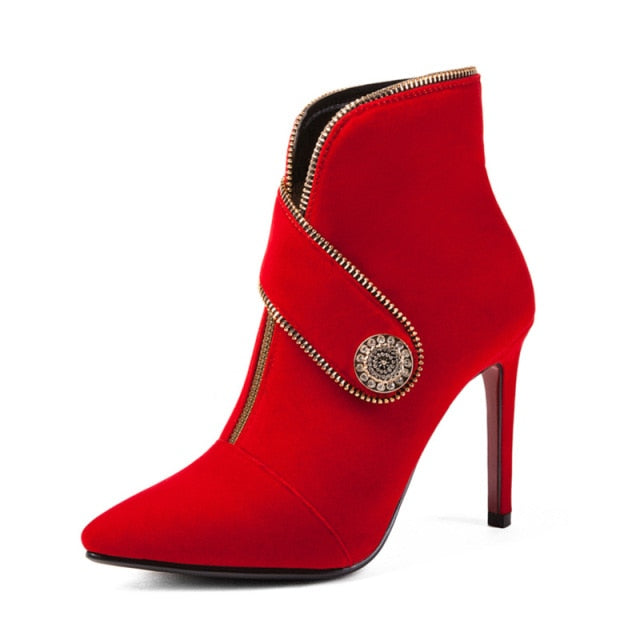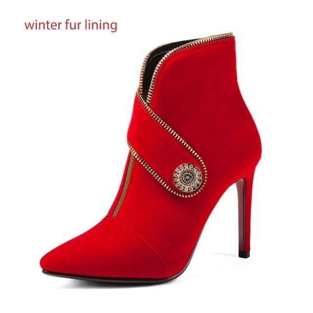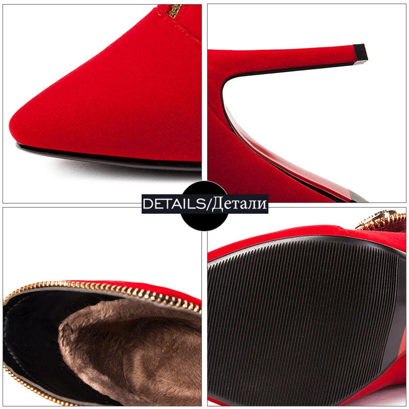 These elegant pointed-toe boots with thin heels are ideal for a night out on the town. Pair with a matching dress or a pair of skinny jeans for a sophisticated look. Lightweight and durable materials with a casual yet elegant design. This stylish boot is the perfect complement to any casual outfit.