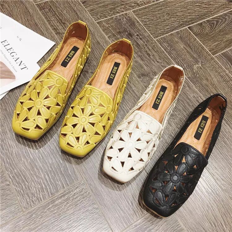 Mocasines planos de piel sintética con estampado floral y opción de hueco