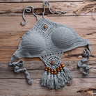 Bikini corto de algodón de ganchillo con decoración de borlas