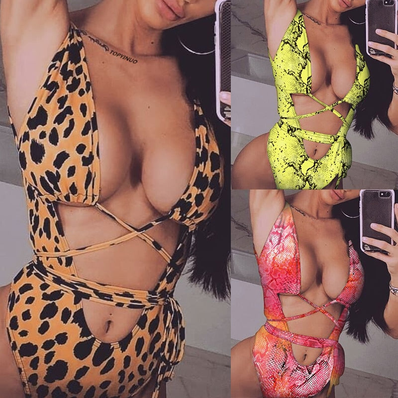 <transcy>Monokini brasileño de una pieza con estampado de leopardo para mujer</transcy>