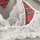 Indulge in luxurious lace and soft polyester fabric with Breathless Longing Lingerie. Plaid pattern adds a touch of sophistication to the wire-free design, while the back closure provides comfort and support. Embrace your sensual side with this exquisite lingerie set.