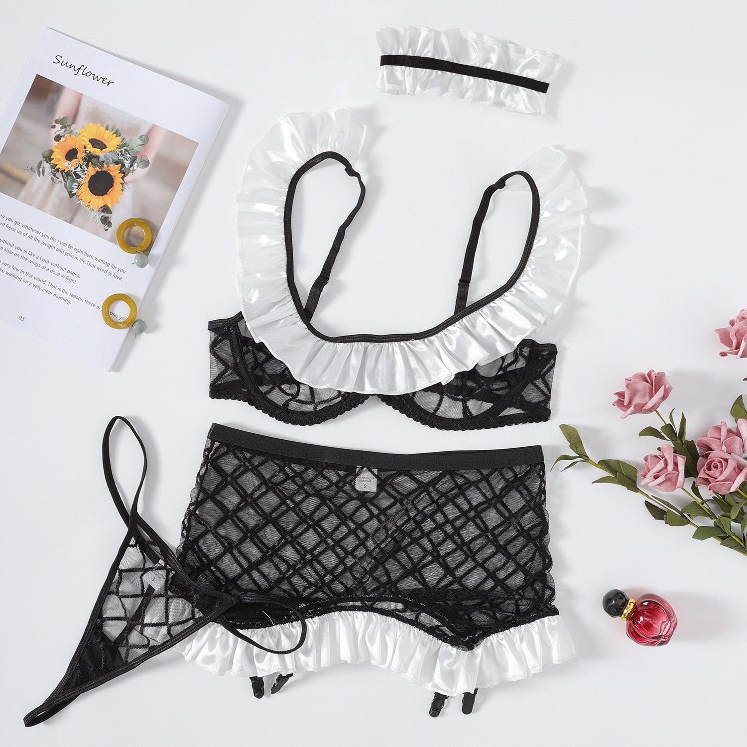 Look no further than this lingerie set for a classic nod to style. Crafted from plaid linen and adorned with delicate ruffles, you will feel as comfortable as you are elegant. Perfect for an everyday look with an edge.