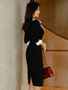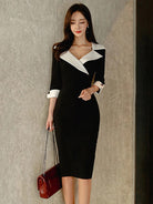 Vestidos a cuadros vintage Bowknot media manga bodycon media rodilla vestido
