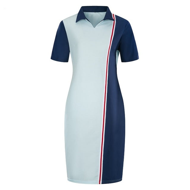 <transcy>Vestido polo casual de manga corta con patchwork de talla grande para mujer</transcy>