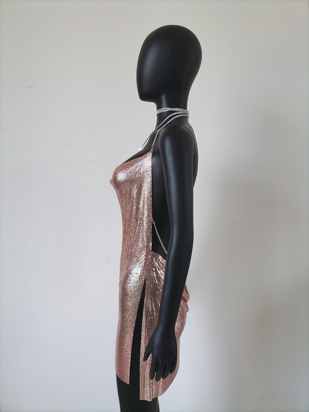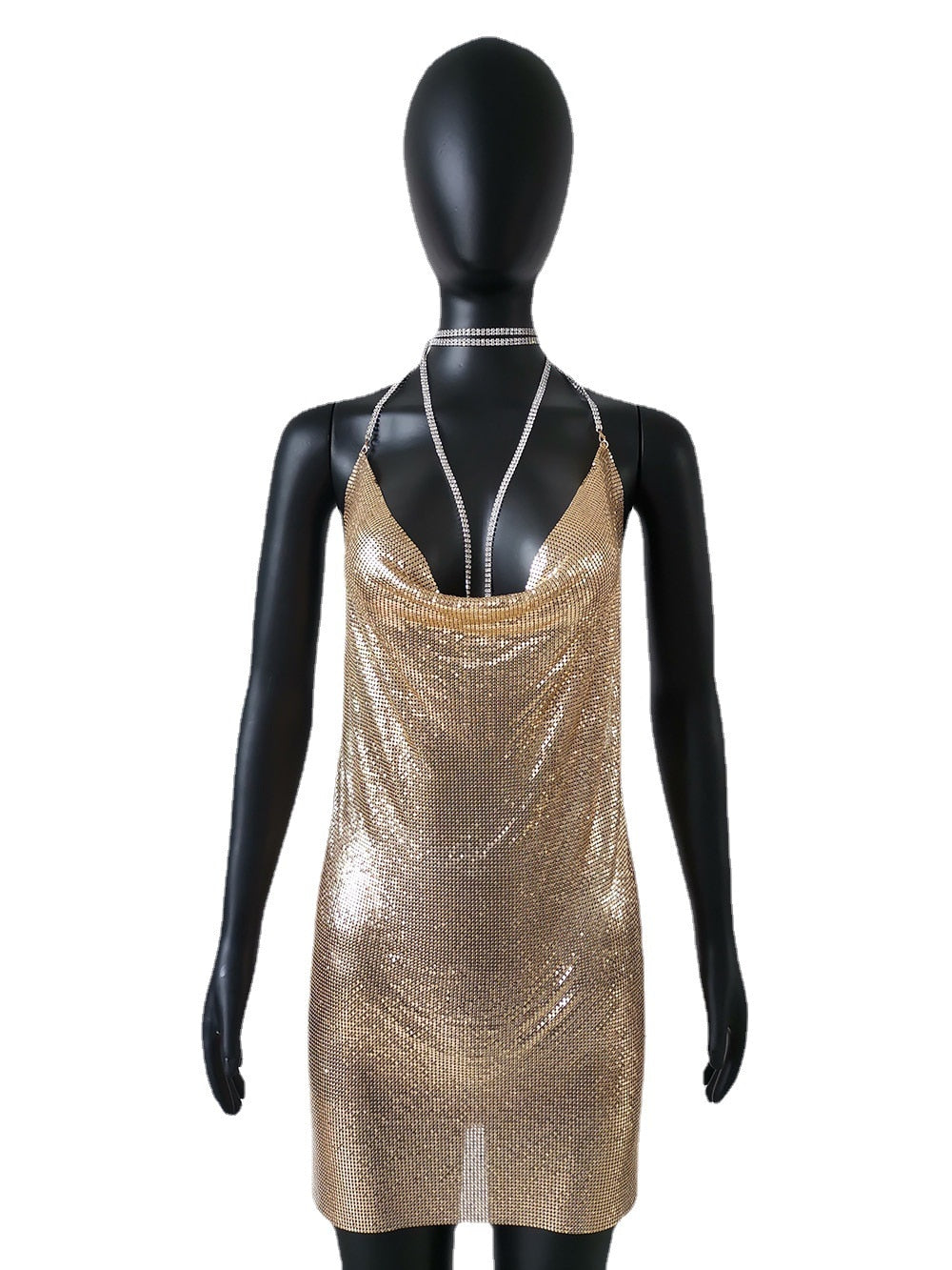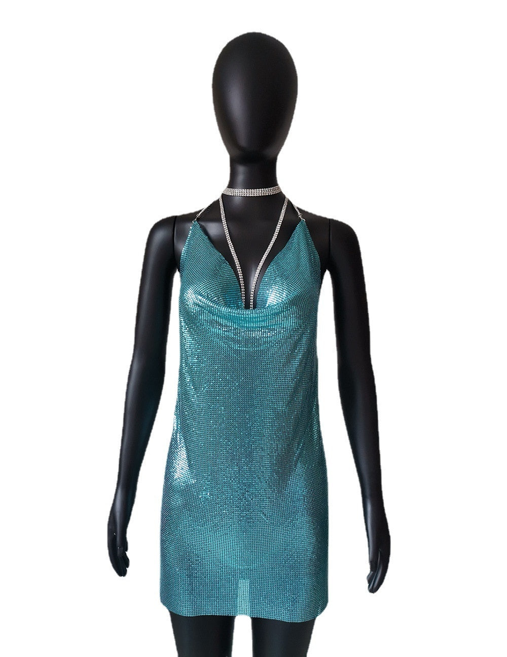 The Change The Hear Mini Dress features a dropped waistline, a neck-mounted design, sleeveless arms, a straight silhouette, a solid pattern type, a Polyester material, and a length that reaches just above the knee making you feel so luxurious at the party. An eye-catching backless detail completes the look. Wear this dress with pearl earrings to give a more elegant touch to your outfit.