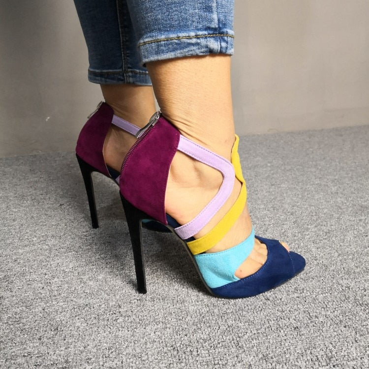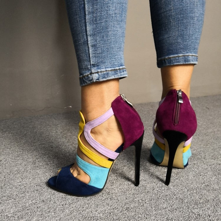 <transcy>Hermosos tacones peep toe coloridos</transcy>