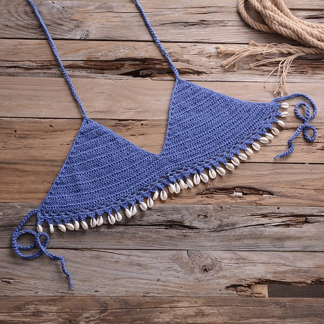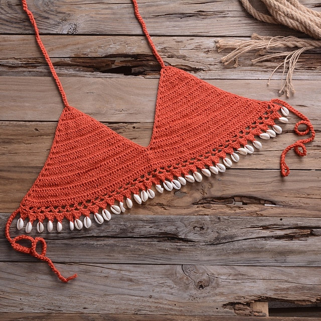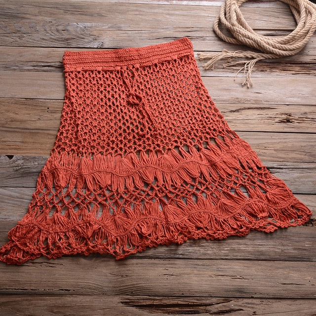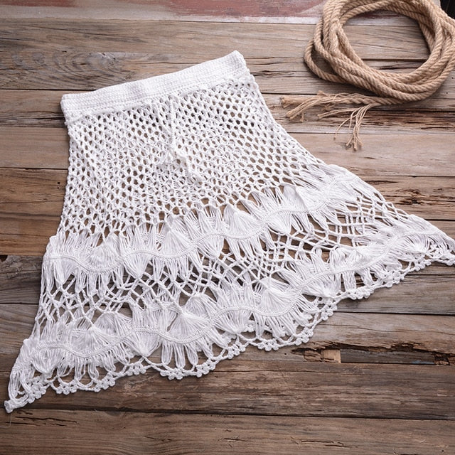Falda de algodón de ganchillo geométrica con decoración de conchas de mar