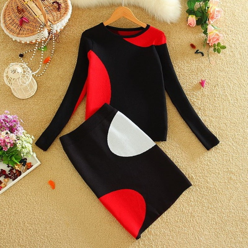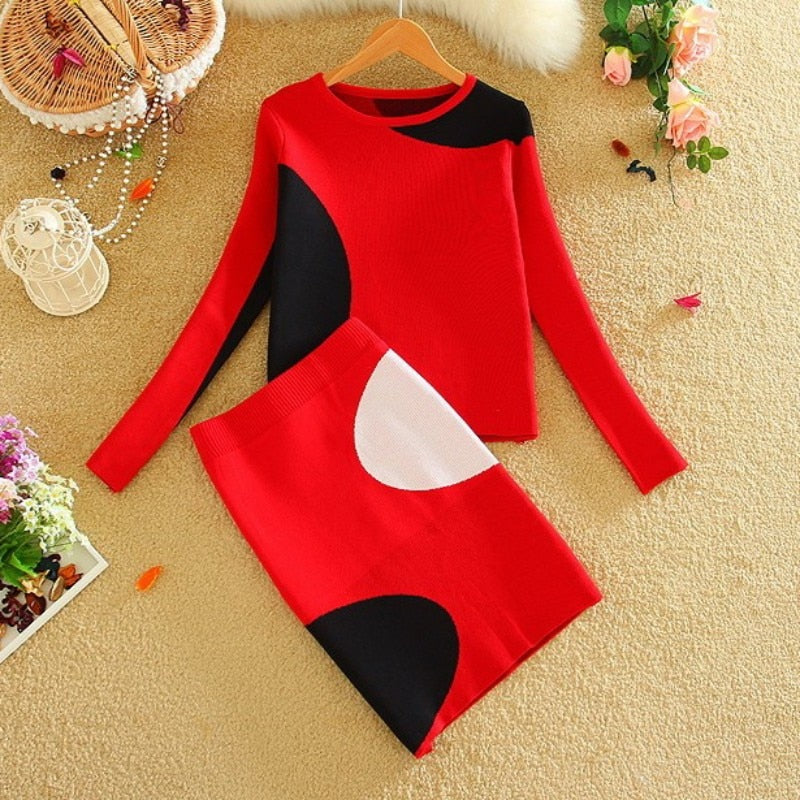 Conjuntos de falda de varios colores con cuello en O, cintura elástica y material de algodón y poliéster