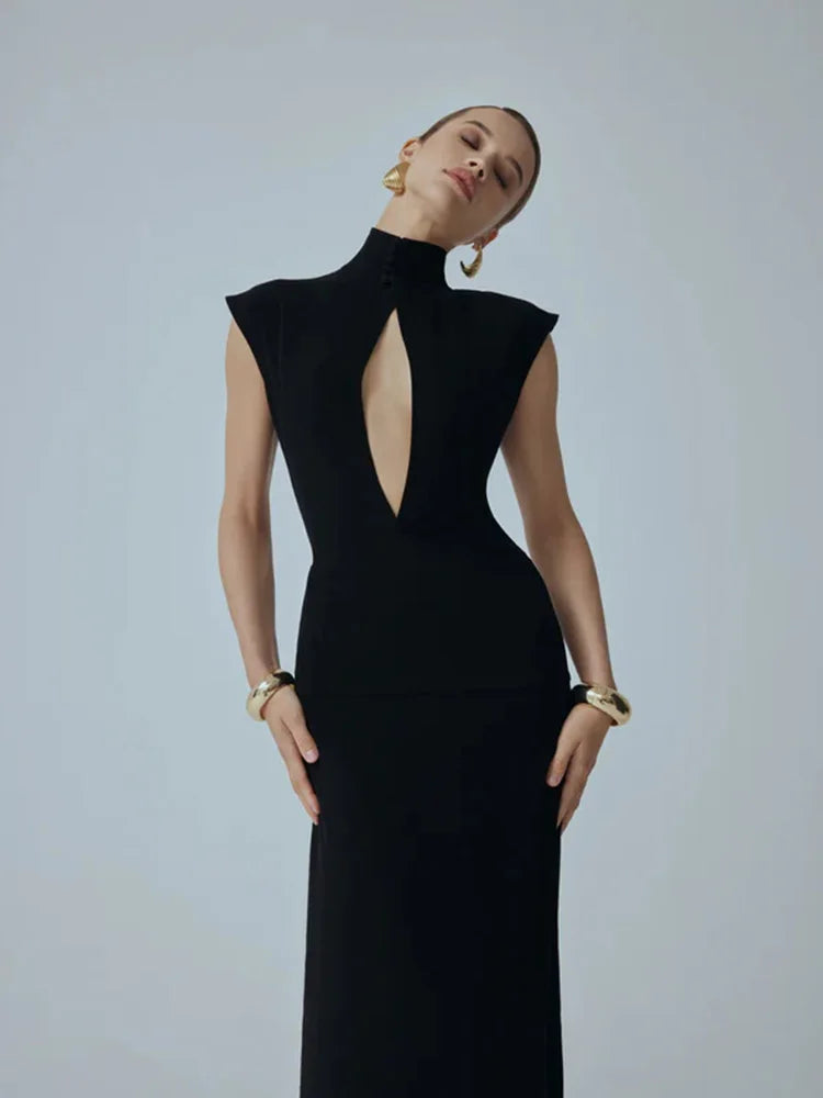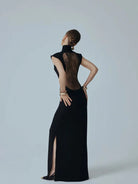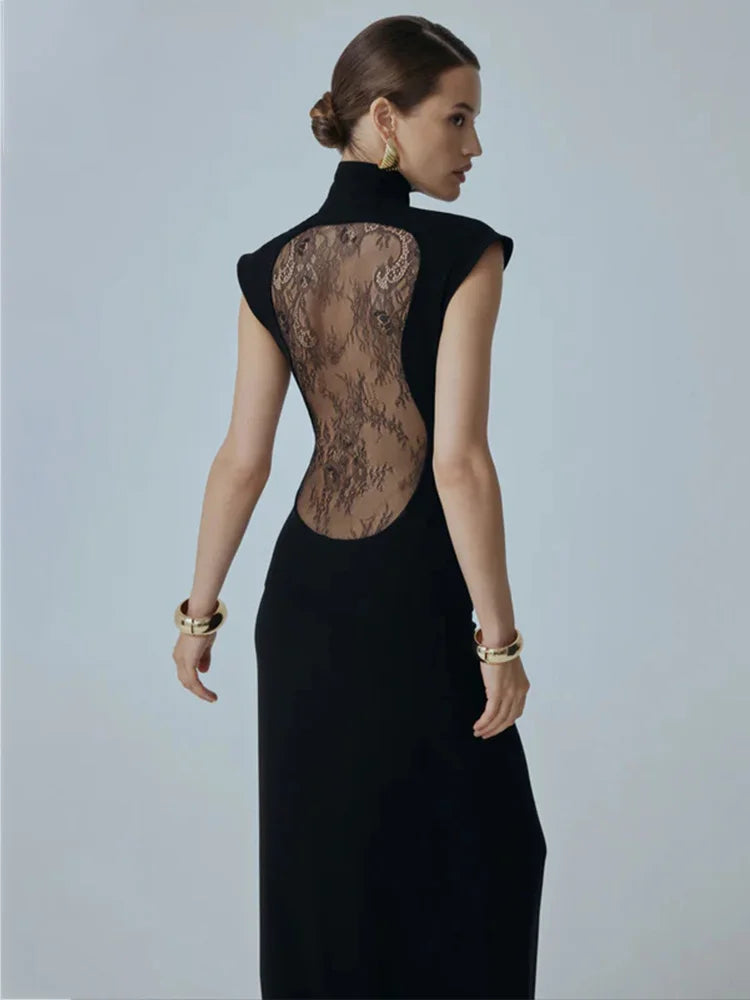 Make an unforgettable entrance in this provocative maxi dress that flaunts intricate see-through lace detailing across the back. A daring design that reveals just enough to captivate, this piece transforms you into the most intriguing person in the room. The flowing silhouette commands presence while the delicate lace creates an irresistible contrast between mystery and allure. For those bold enough to embrace their power.