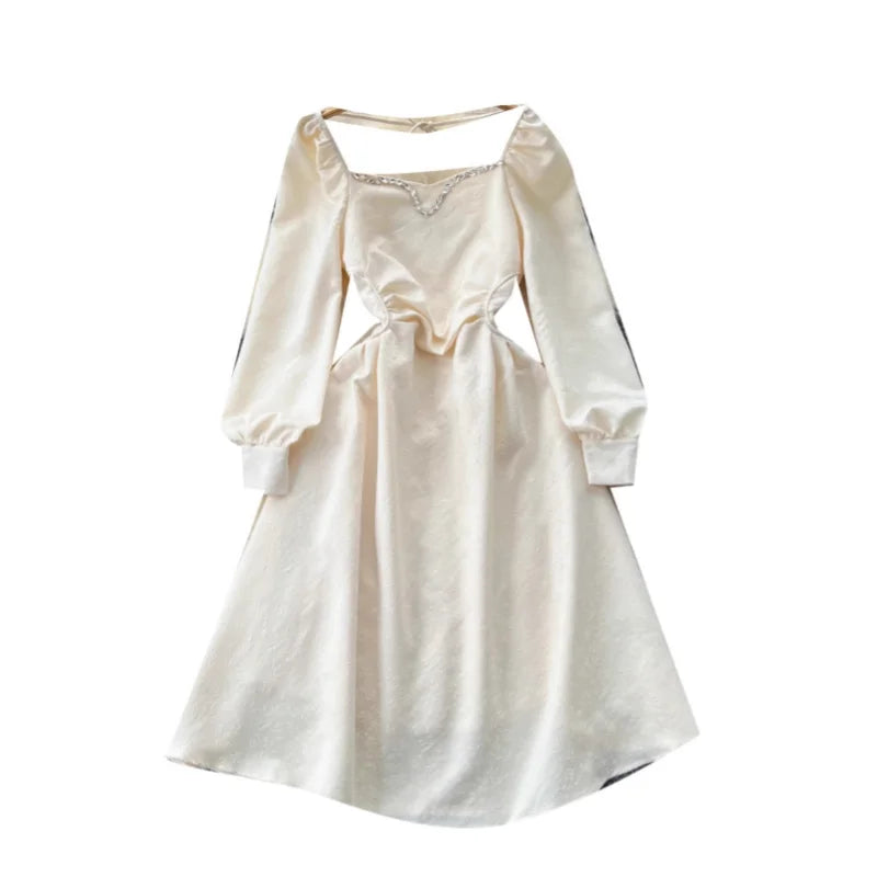 Indulge in a dreamlike love with our elegant midi dress. Adorned with sparkling rhinestones, this dress features a flattering mid-calf length and a soft blend of cotton and polyester for comfort and style. Perfect for any occasion, it's the must-have addition to your wardrobe.