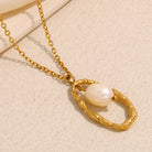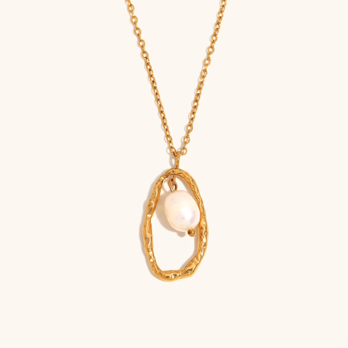 The Dripping In Gold Pendant Necklace features a bold stainless steel pendant hanging from a sleek O-chain. This daring piece adds a touch of edgy sophistication, perfect for those who want to make a confident statement with their accessories.