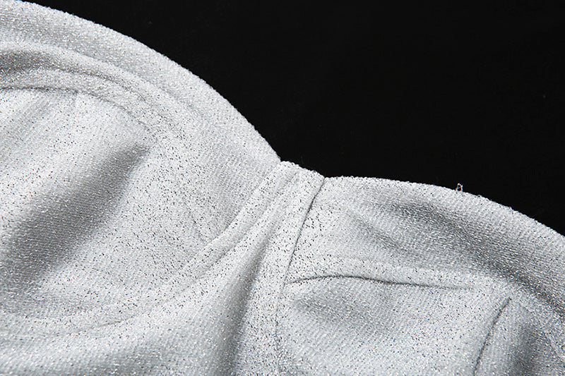 <transcy>Top corto elegante de las mujeres del brillo de la manga larga del soplo de la malla del hombro</transcy>