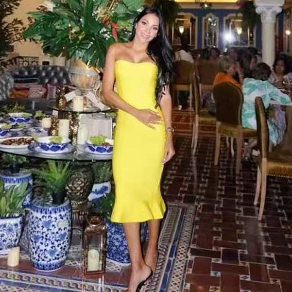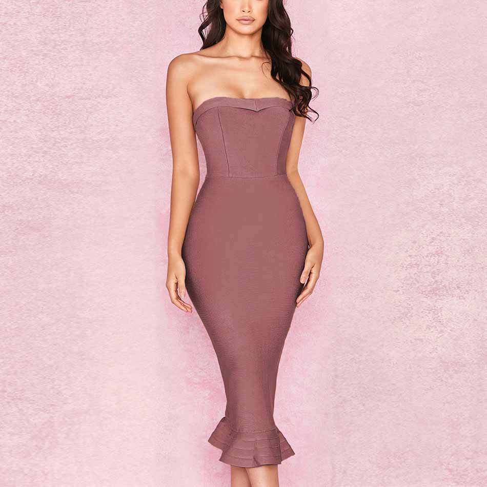 <transcy>Elegante vestido largo sin tirantes con cuello oblicuo y sirena sin mangas para mujer</transcy>