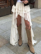 Elevate your wardrobe with this sophisticated floor-length skirt, featuring delicate thin pleats that create graceful movement and dimension. The flowing silhouette drapes beautifully, offering timeless elegance for formal occasions, evening events, or refined everyday wear. Crafted for a polished look that transitions seamlessly from day to night, this piece is a versatile essential for any discerning wardrobe.