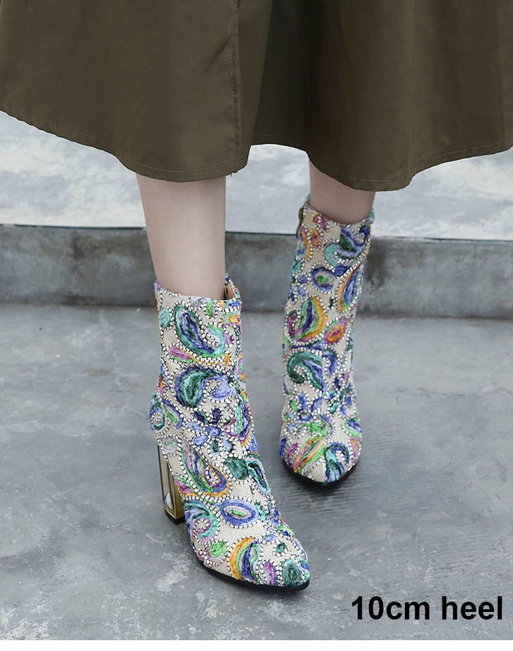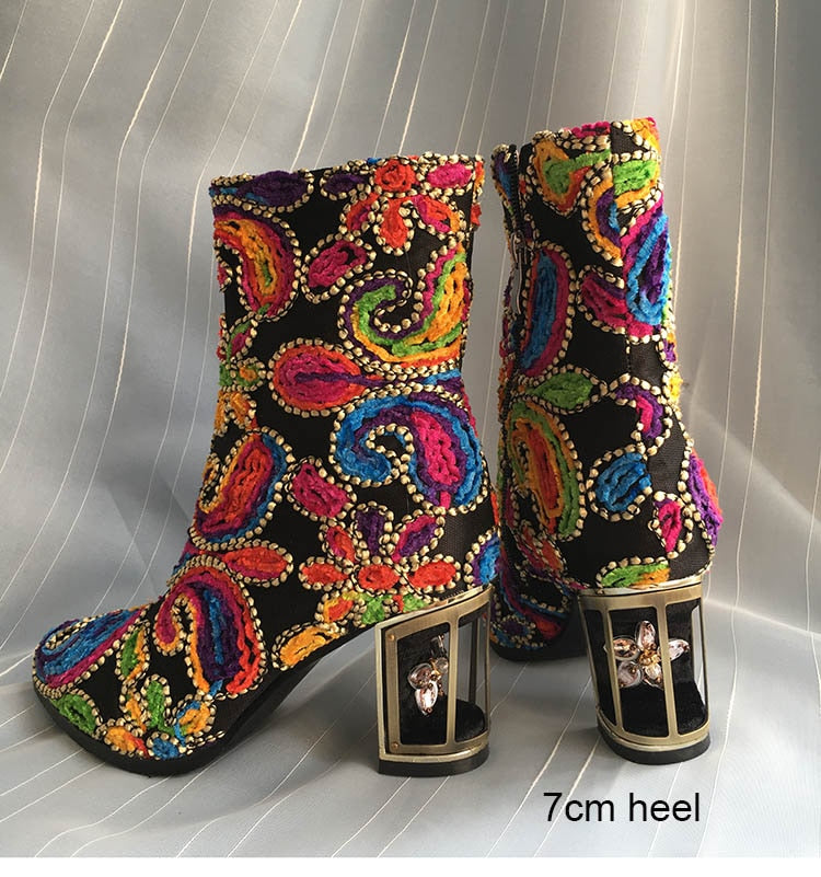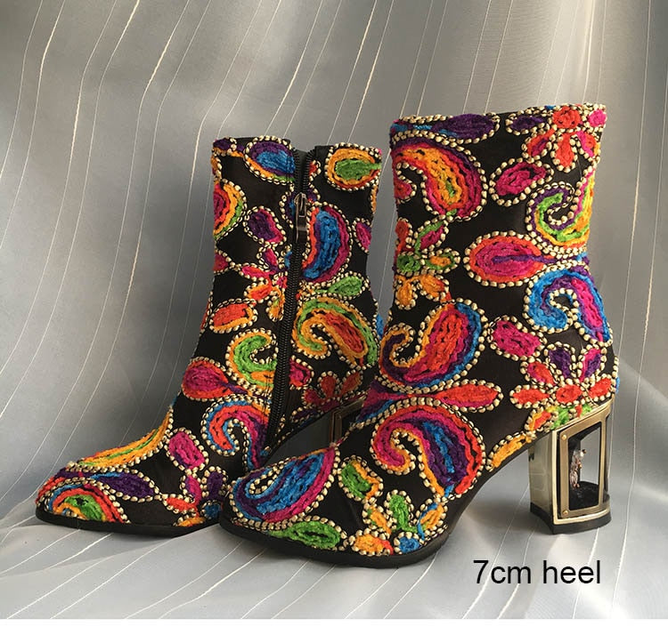 <transcy>Botines de mujer de color mezclador de flores estampadas étnicas</transcy>