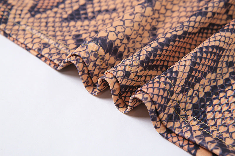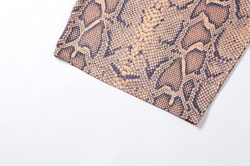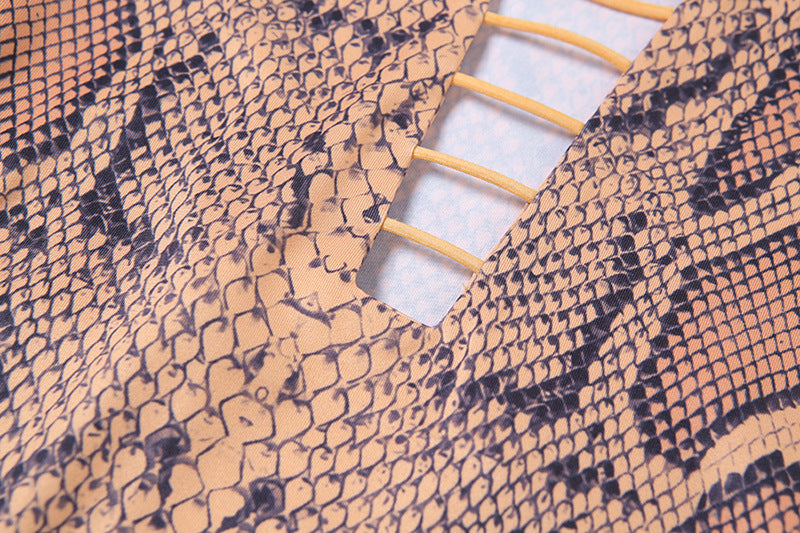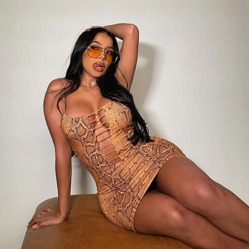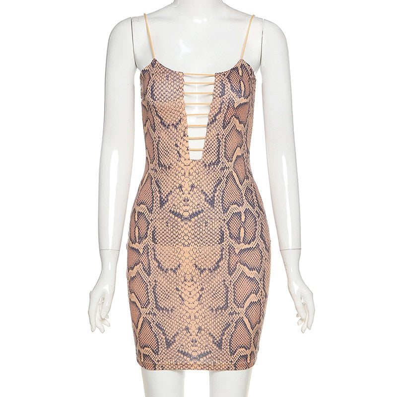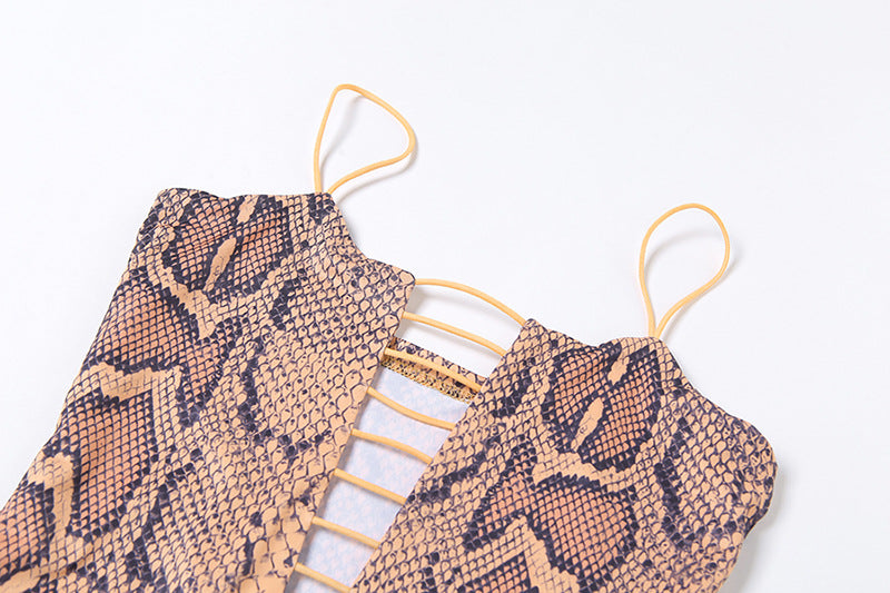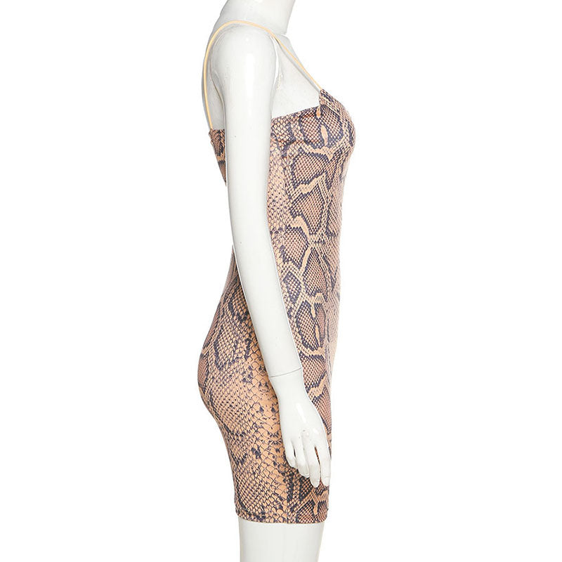Minivestido de spandex de poliéster sin mangas con estampado de piel de serpiente y estilo ahuecado