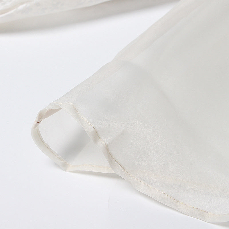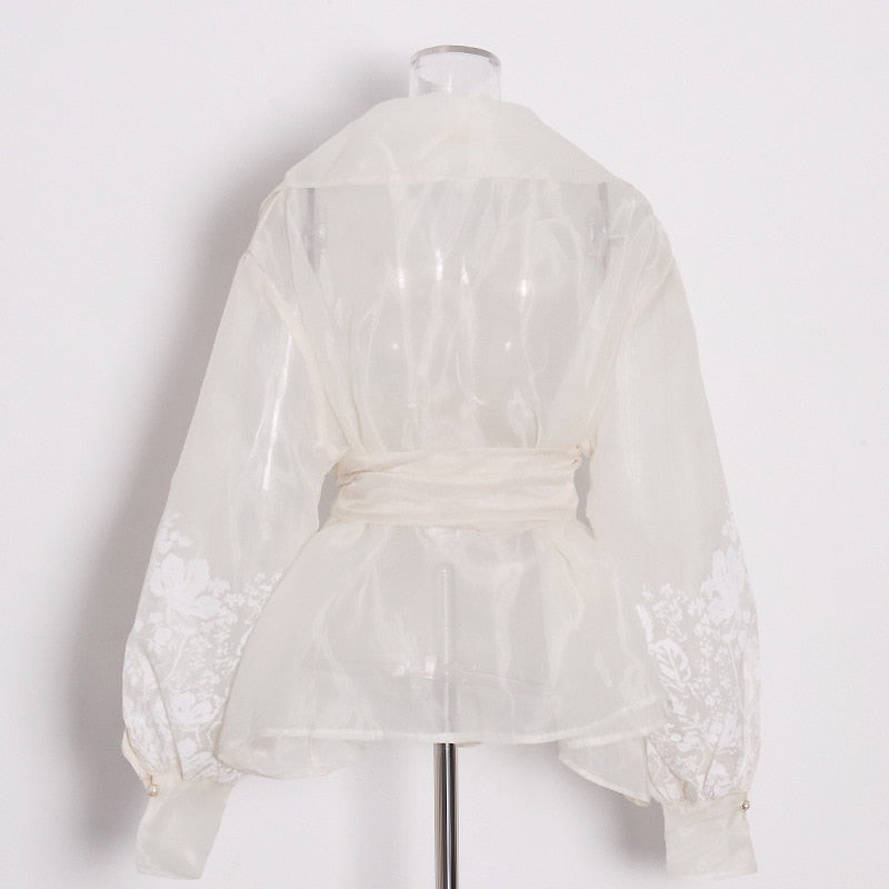 This blouse is perfect for those who want to dress up for work. The white color goes with any skin tone and the embroidery is done in a beautiful floral pattern. The lantern sleeve and turn-down collar add a feminine touch to this otherwise simple blouse.