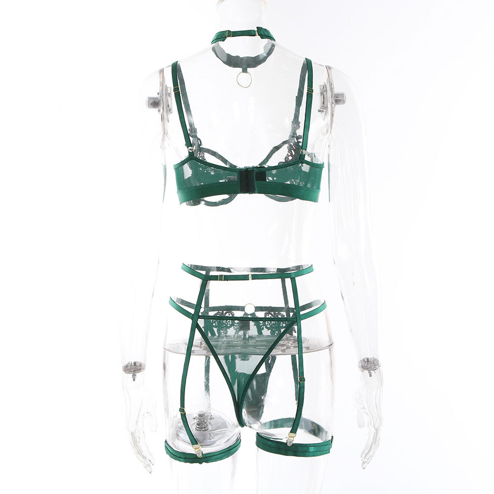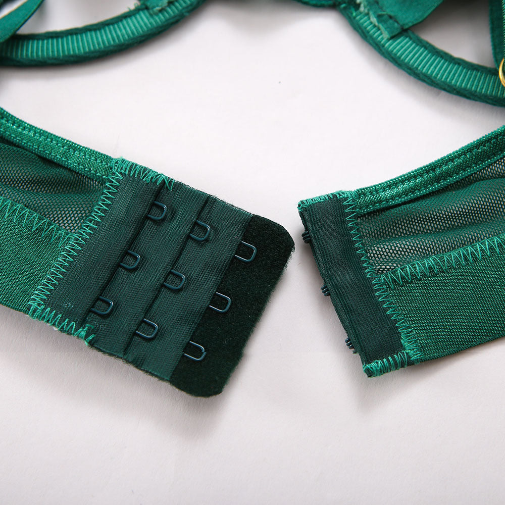 The most classic lingerie pieces are made from delicate lace. The unique shape of this bra is emphasized by the sheer green color. This bra is perfect for pairing with a strapless dress or even a sheer top.