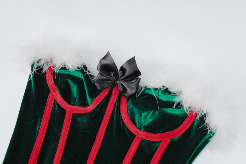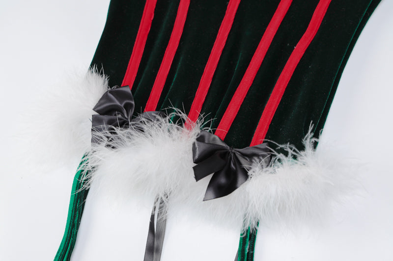 This lovely green camisole is decorated with a red stripe line, bow, and faux fur that gives it a stylish and elegant look. It's made of a soft and comfortable fabric that feels great next to the skin.