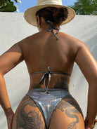 Unleash your rebellious spirit with this edgy two-piece set featuring bold patchwork design. Crafted from a polyester-spandex blend that hugs your curves while allowing unrestricted movement. Perfect for those who dare to stand out and make the highway their runway. No rules, just attitude.