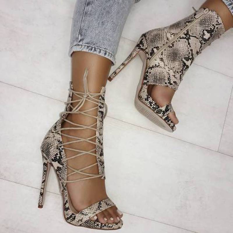 Tacones finos con tiras cruzadas y estampado Gladiator Python