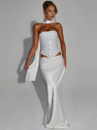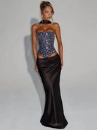 Turn heads with the Glow And Flow Skirt Set, designed to showcase your bold side. Made from sleek spandex and polyester, this backless ensemble offers a daring silhouette perfect for making a statement at any party. The lightweight fabric moves with you, combining comfort with fearless style. Embrace the night with confidence and let your outfit do the talking.