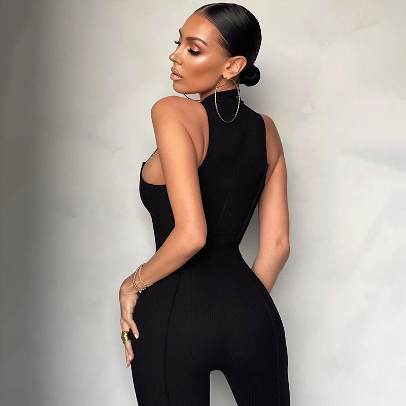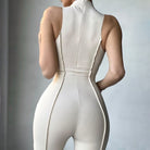 Mono sin mangas ajustado con cuello en O y cierre de cremallera