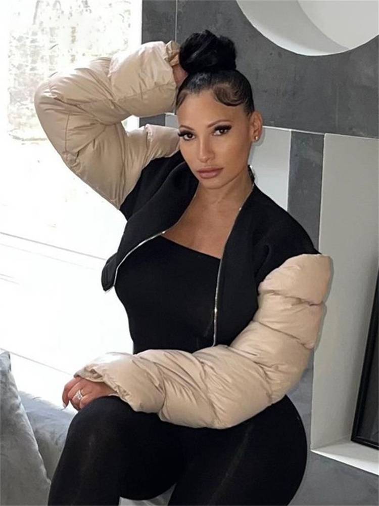 Designed with a stylish patchwork, this women's jacket is a must-have for those looking for a versatile outerwear piece to add to their collection. The long sleeves help keep her warm and comfortable during the colder months. The long sleeves help keep you warm and comfortable during the colder months. The zip-up closure adds convenience, allowing for easy access.