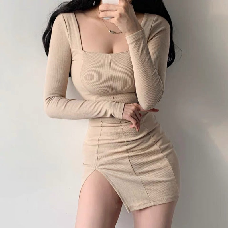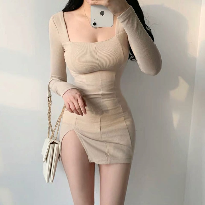 Bodycon de corte evasé de algodón sobre cuello cuadrado