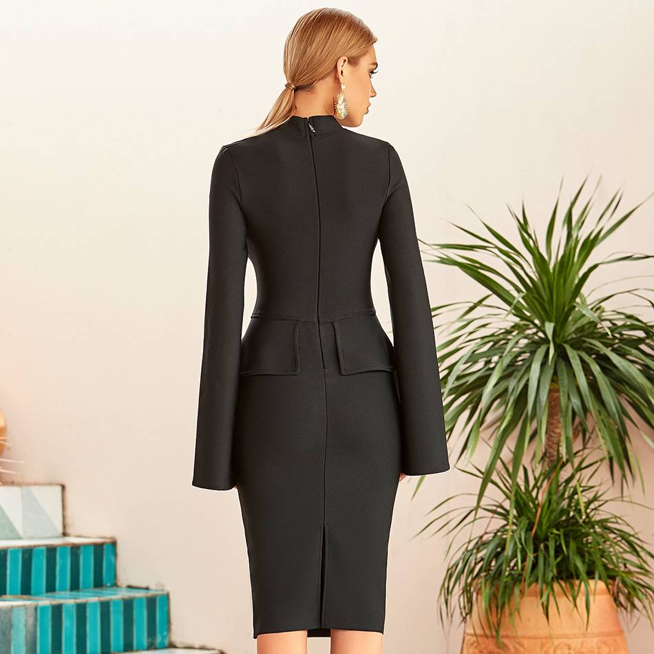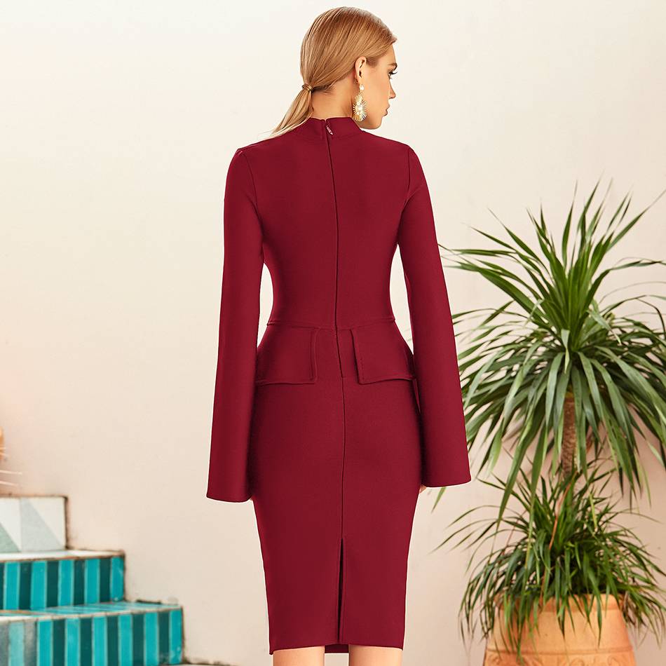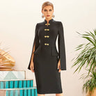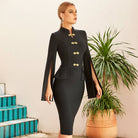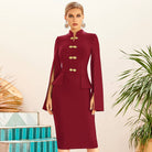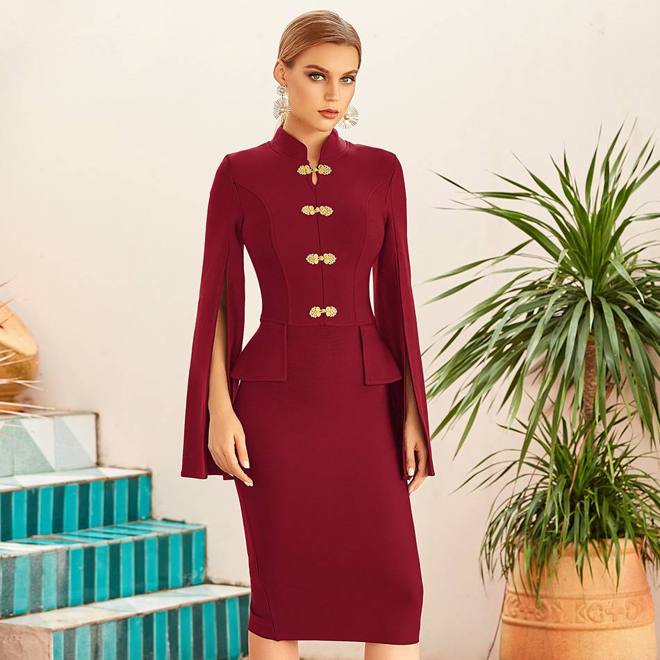 Vestido midi de spandex de poliéster con cremallera en la espalda sólida con estilo de mangas estilo capa y decoración de botones orientales
