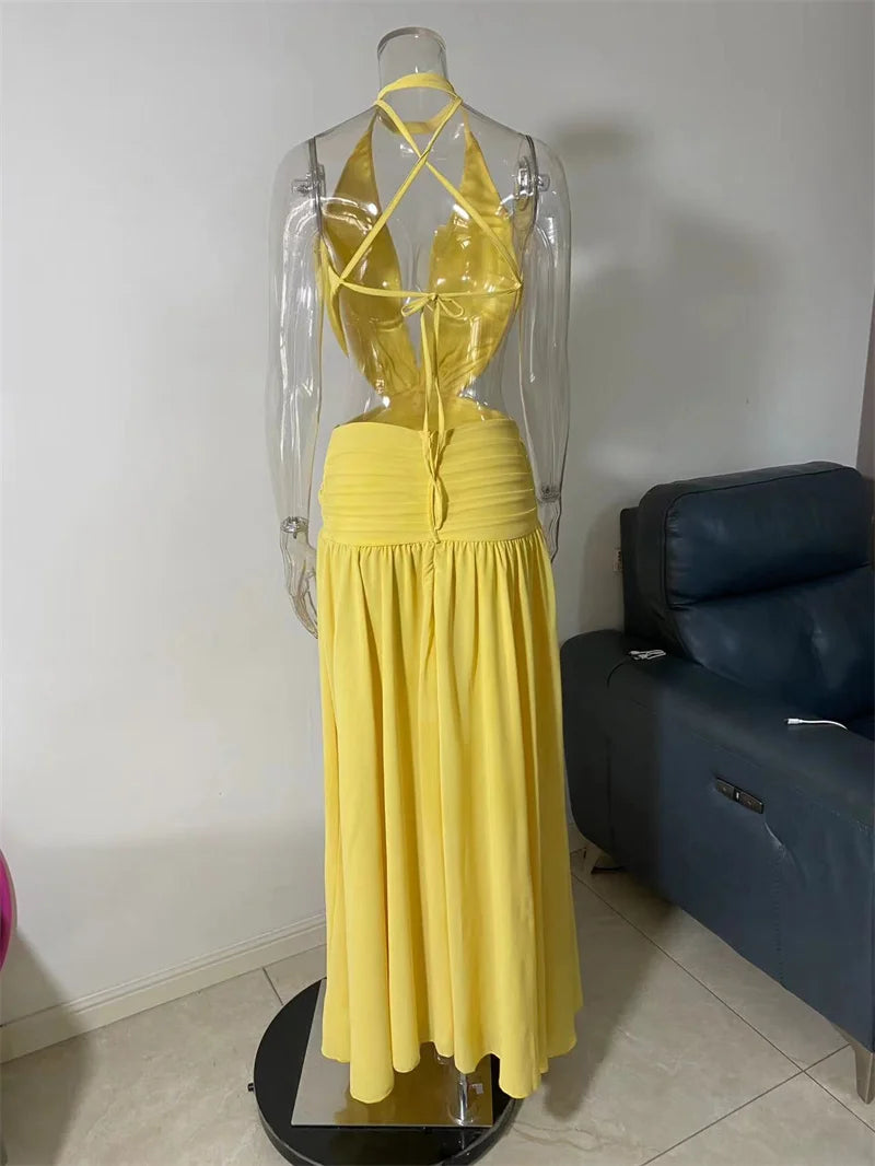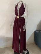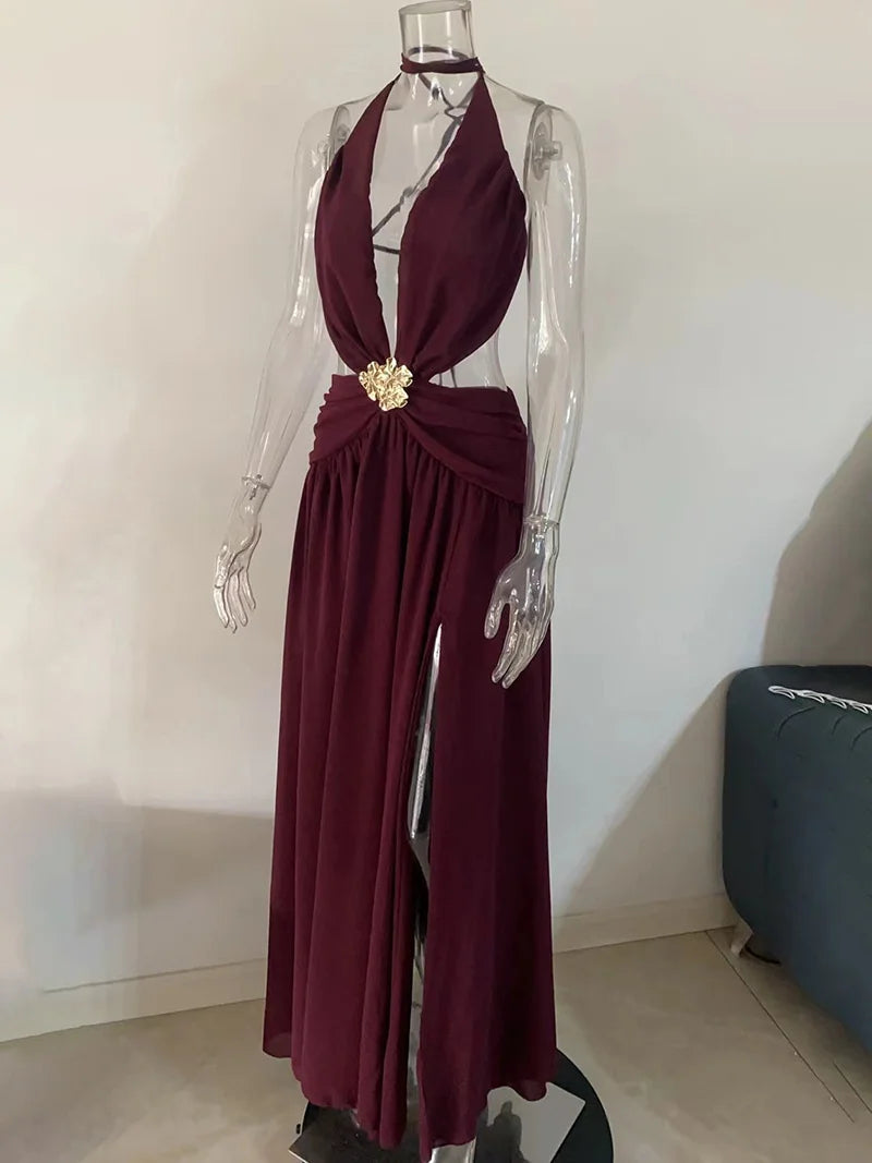 Her Quiet Exit Long Dress Make an entrance that whispers before it roars. This floor-length dress features strategic cut-outs that reveal just enough to intrigue, crafted from a supple polyester and spandex blend that moves like a second skin. Daring yet refined, it's designed for those who understand that true boldness lies in understated elegance. Own the room with quiet intensity.