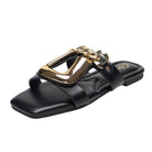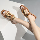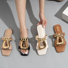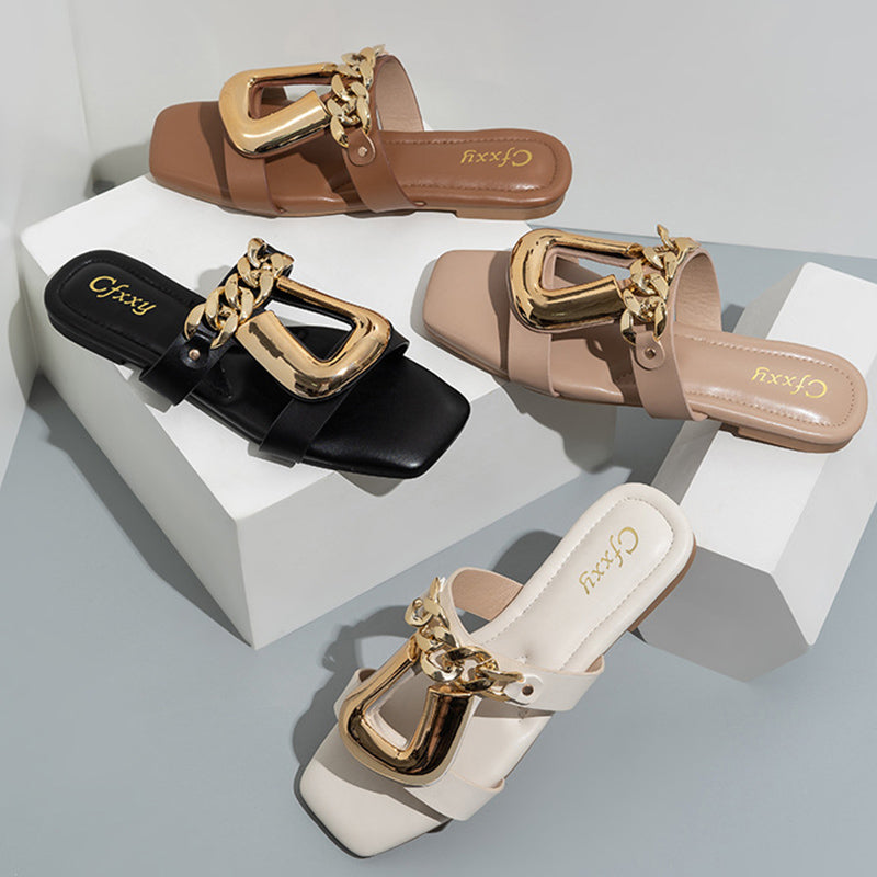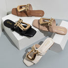 These lightweight, on-trend sandals are the perfect addition to your summer wardrobe. They feature a square toe that will keep your feet cool. They also have a chain decoration on the front strap. Wear these sandals with jeans and a cute t-shirt for a casual day out, or dress them up with a dress for a night out on the town.