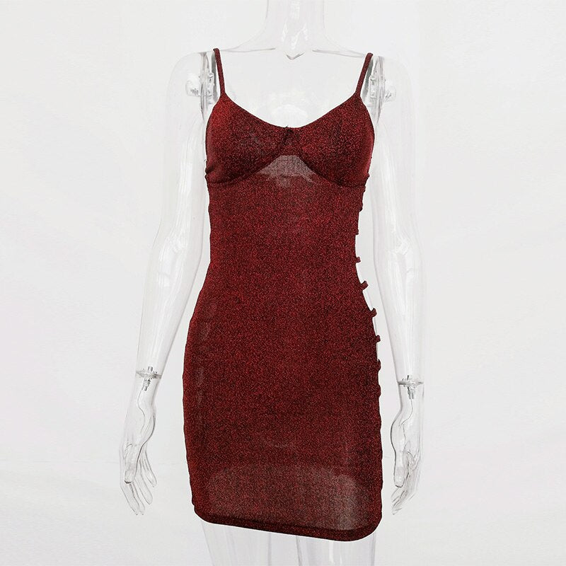 <transcy>Mini vestido ajustado con tirantes finos con cuello en V ahuecado para mujer</transcy>