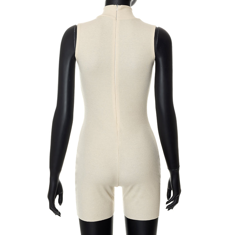 Get your chic on with this flattering women's romper. Made of polyester, this romper features a sleeveless design with an o-neck and a hollow-out design in the front. The romper is available in a solid color, so you can wear it with any outfit. Pair it with a blazer and heels for a formal look or wear it with sneakers for a more casual feel.