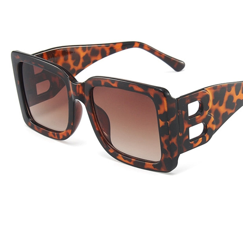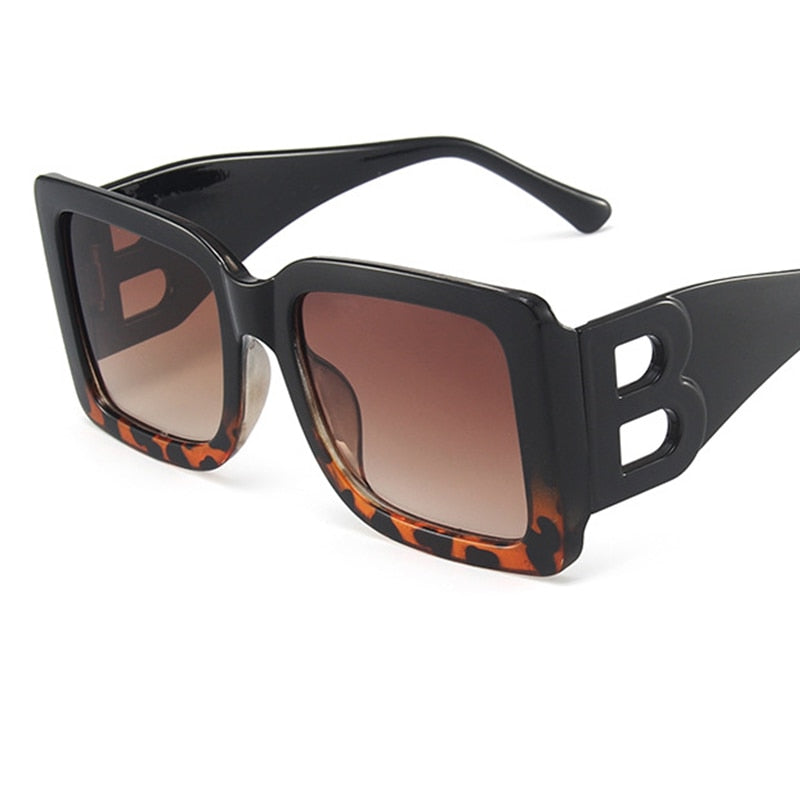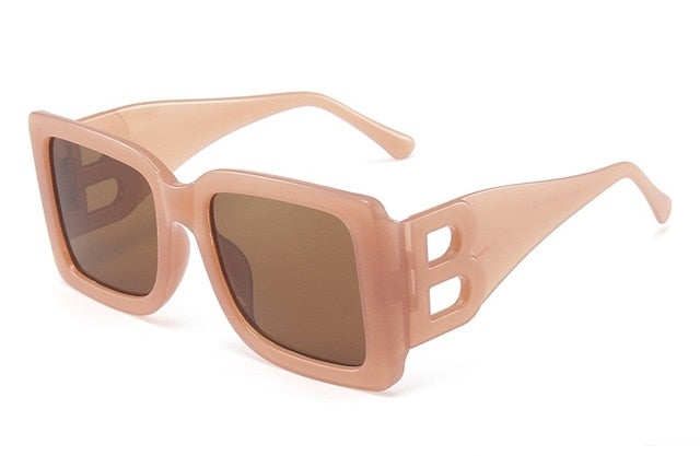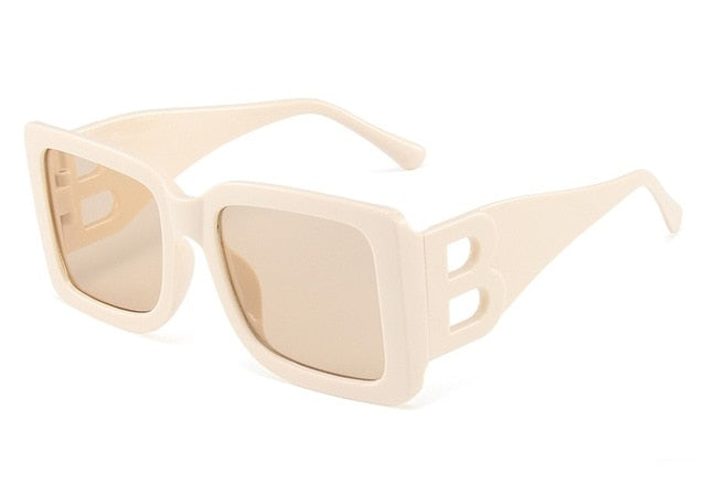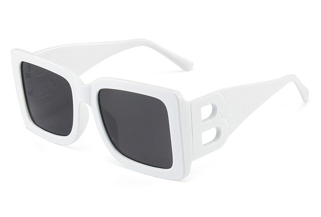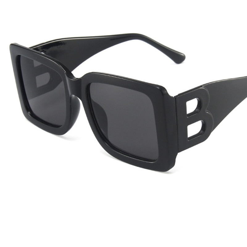 Gafas de sol cuadradas con montura de plástico con UV400 Lente de policarbonato y letra "B" en el lateral del marco.