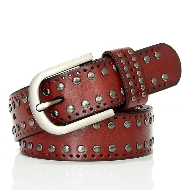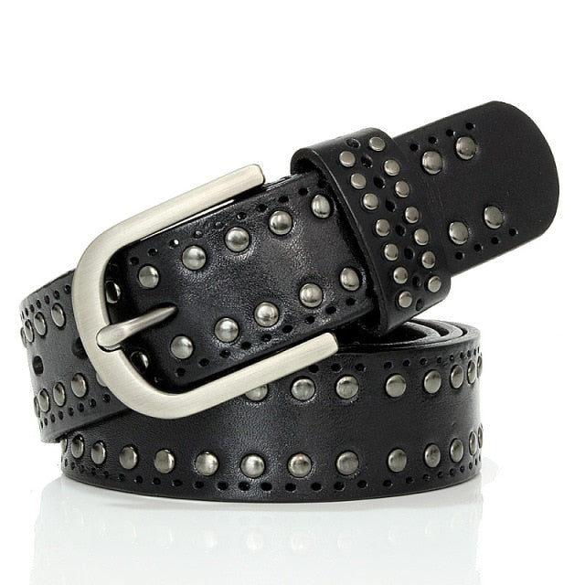 Cinturón de piel de vacuno de piel auténtica con hebilla de metal y decoración con tachuelas estilo remache punk