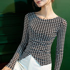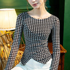 You'll look like a chic, stylish, and professional woman in this shirt. The shirt is made of polyester and has a patterned design. It has long sleeves and an o-neck.