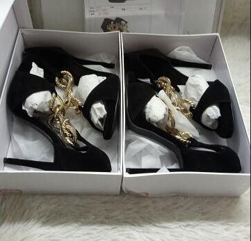 Sandalia Flock Tacones Finos Decorada en Metal Dorado