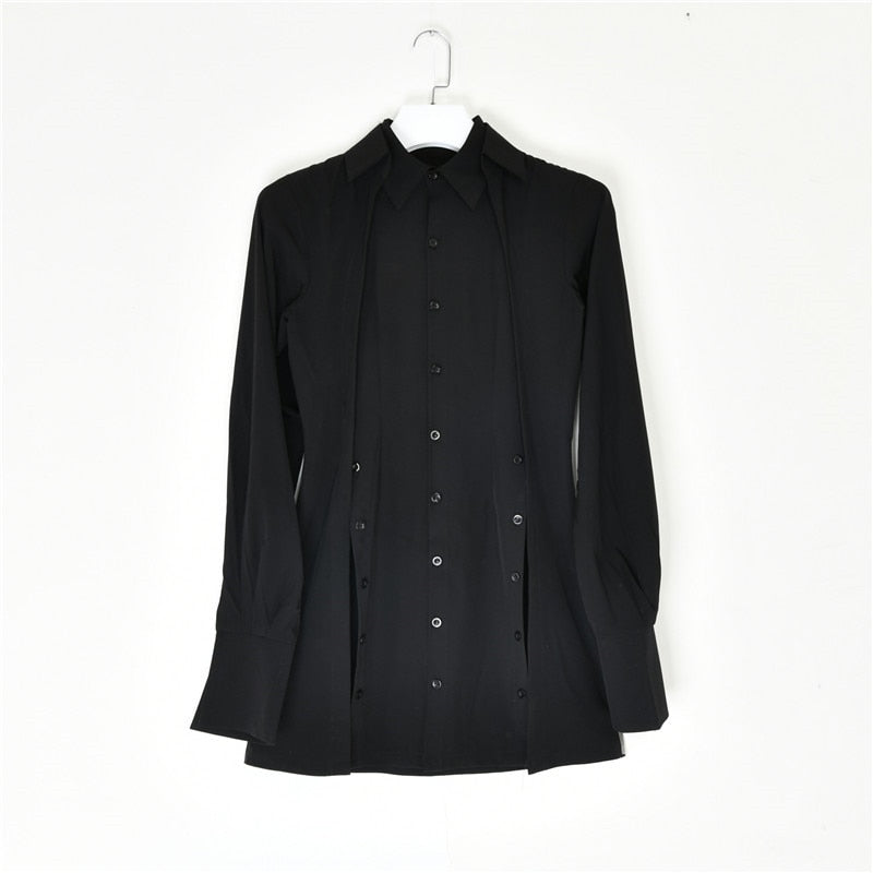 Minivestido de aspecto de dos capas con cuello vuelto y decoración de botones